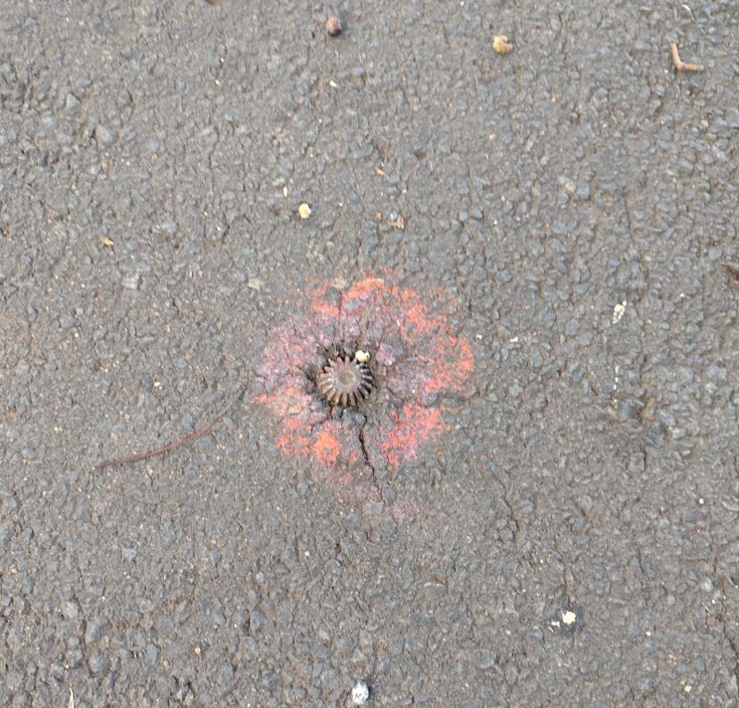 On my way to work I pass by two locations where there are odd looking steel objects embedded in the bitumen (asphalt).