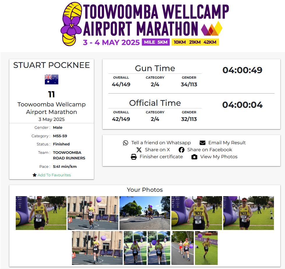 So, some wins, and some losses in the pacing effort. The run itself was excellent. The home crowd, my fellow pacers, all my club mates, the support staff, and the organizers. A really first rate experience 🎉.